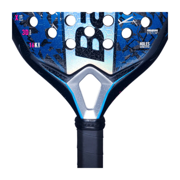 Teardrop Head Shape: Offers a balance between power and control, suitable for versatile playstyles. 16K Carbon Surface: Provides increased rigidity and power for aggressive shots. X-EVA Core: Multi-layered foam core combining stiff outer layers for explosive power and a softer inner layer for comfort and tolerance. Vibrabsorb System: Enhanced vibration absorption reduces the risk of injury and improves comfort. 3D Spin+ Technology: Textured surface increases spin potential and shot precision. Smart Buttcap: Allows for customization or removal of the wrist strap for personalized comfort. Who Is This Suited For? Ideal for advanced players focusing on aggressive play and seeking a racquet that offers both power and maneuverability. Its design supports those aiming to enhance their aerial game with a racquet that provides control and comfort.The racquet weighs approximately 355 grams, providing a balance between maneuverability and stability.
