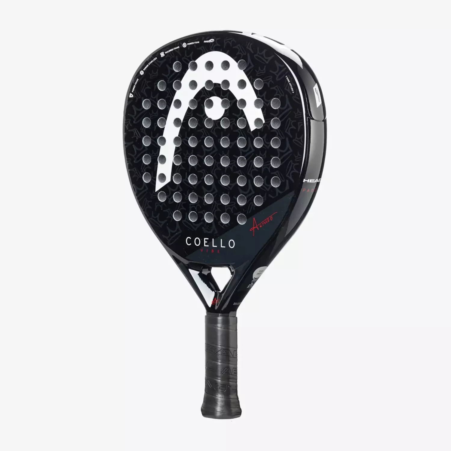 The Head Coello Vibe 2025 Padel Racquet was developed in collaboration with Arturo Coello, and it is tailored for beginners. The racquet has a Power Frame design for improved energy transfer. The racquet is lightweight and well-balanced.