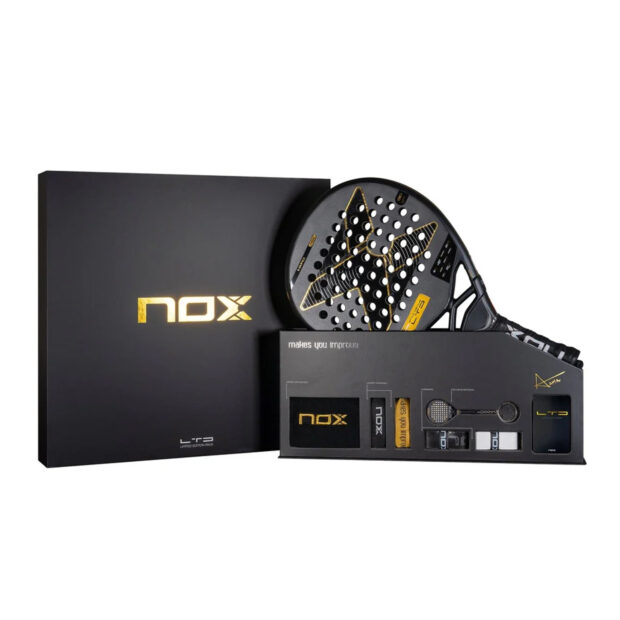 Experience NOX’s most advanced set with the NOX AT10 Genius LTD 2025 – Agustin Tapia LIMITED EDITION Padel Racquet. This cutting-edge racquet features a revolutionary mold, combining 18K Carbon and MLD Black EVA multilayer rubber for dual-density performance—offering a firm touch for powerful shots and a softer feel for precision. Enhanced with NOX Custom Grip®, an octagonal cap, and exclusive accessories, this set redefines innovation on the court.