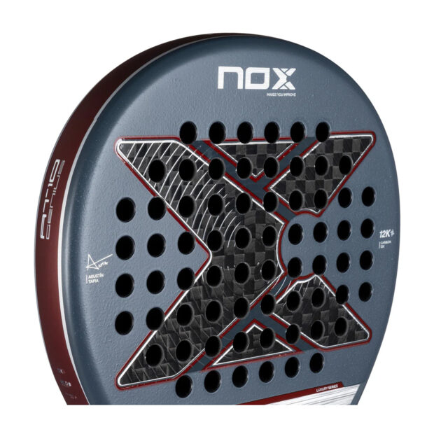 The NOX AT10 Luxury Genius 12K 2025 by Agustín Tapia offers unmatched precision and power, designed for advanced players. With a teardrop shape, 12K carbon surface, and 3D roughness, it enhances control and spin for dynamic play.