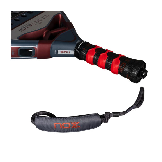 The NOX AT10 Luxury Genius 12K 2025 by Agustín Tapia is crafted for high-performance players seeking a blend of power and control. With its teardrop shape, the racquet provides maximum power while maintaining excellent maneuverability. The 12K carbon surface and multi-layered MLD Black Eva core ensure a solid and rigid feel, while the hexagonal 3D roughness enhances spin.