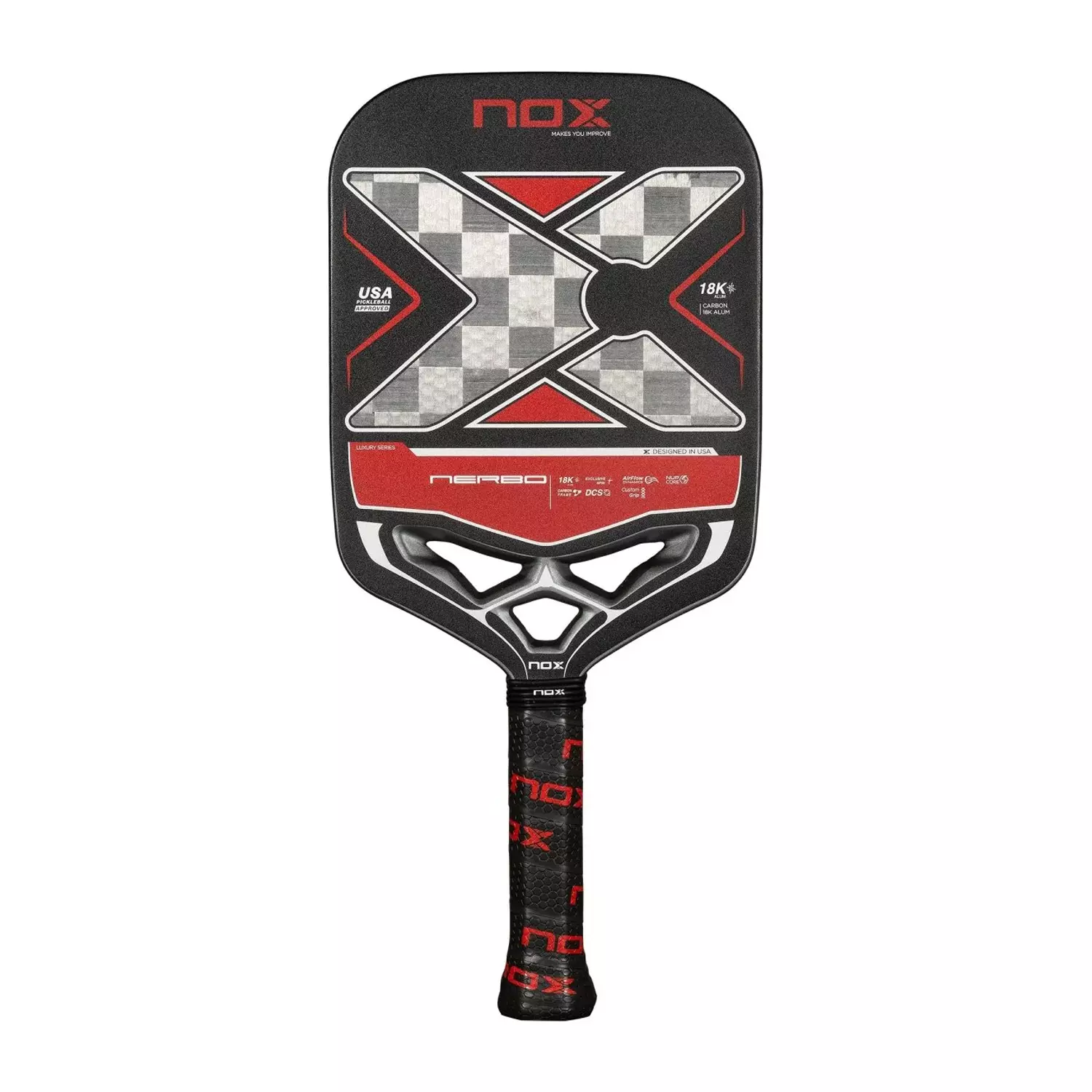 NOX Luxury Nerbo Pickleball Paddle combines 18K aluminized carbon fiber with the Ultra Power Core, offering an unparalleled hitting experience: comfortable, solid and firm.