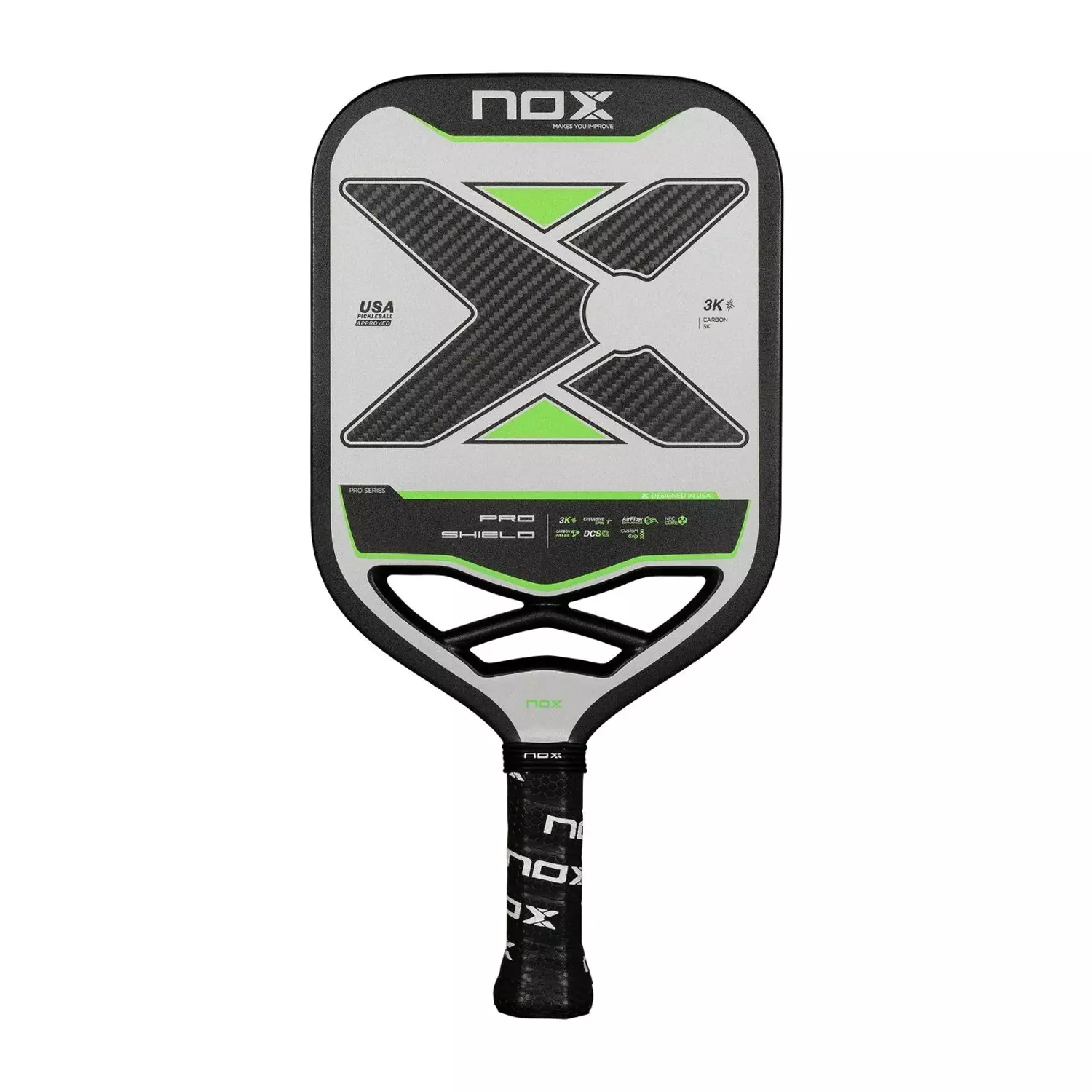 NOX Pro Shield Pickleball Paddle combines 3K carbon fiber with the Enhanced Comfort Core, offering a very comfortable, precise and soft feel. In addition, the carbon frame reinforces the rigidity and durability of the paddle.