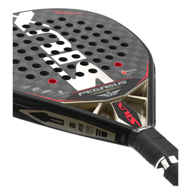 The Siux Pegasus Revolution 12K Padel Racquet combines 12K carbon construction with advanced technology to offer superior control, power, and comfort. Featuring the Revolution system’s flat carbon twin-tubular design, it minimizes vibrations while maximizing ball speed.