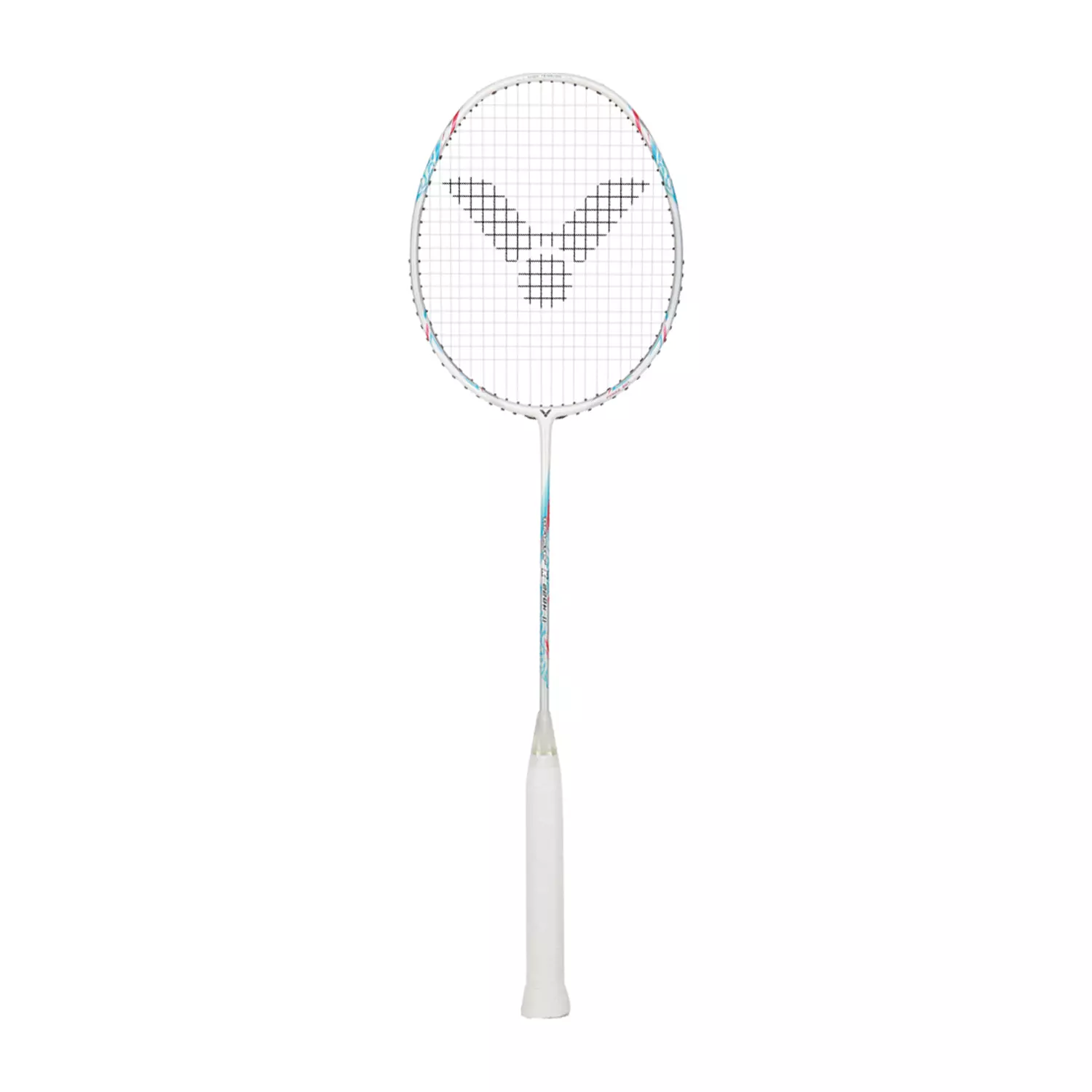 The Victor Thruster 220H II Badminton Racket is a medium flex, slightly head heavy racket, designed for intermediate players and offering great stability, due to the box-shaped design known as Powerbox. This increases stability and reduces tension loss in strings, as well as allowing higher tensions when restringing (up to 35lbs).