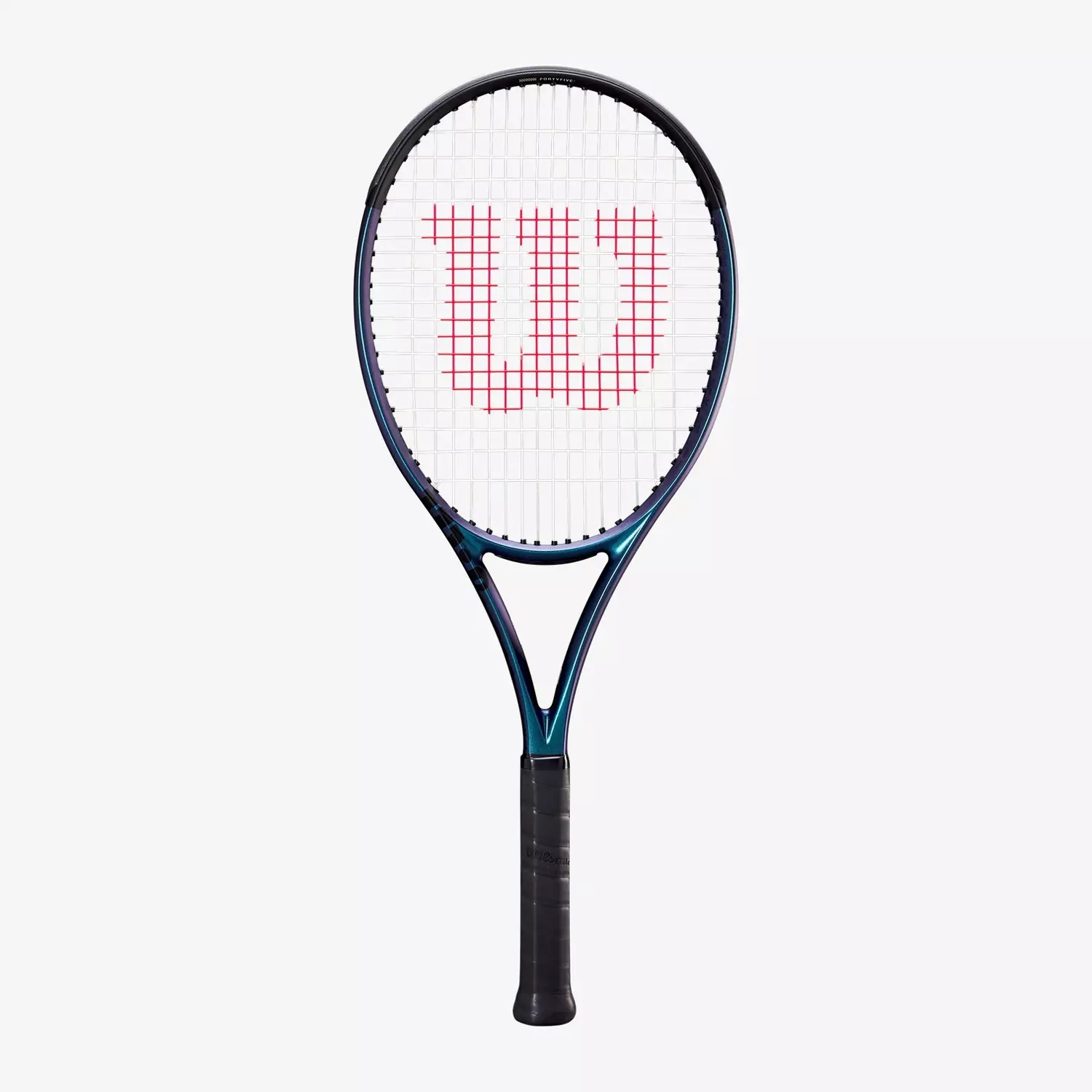 The Wilson Ultra 100 V4 Tennis Racquet ushers in a new generation of Ultra with supreme style and invigorating performance. Thanks to a new construction and a new geometry, this racket plays unlike any Ultra before it. Highlighted by the integration of FORTYFIVE° into the lay-up for a softer, more comfortable feel along with enhanced stability, this frame upgrades the delivery of easy power for its users. Key geometrical updates include an expanded Sweet Spot Channel at the tip of the hoop for extra power and reduced bulk in the beams for a sleeker, more aerodynamic look. On the subject of looks, this racket has no rival: color-shifting blues dance to the different angles of sun rays deflecting off the racket surface for a dazzling display.